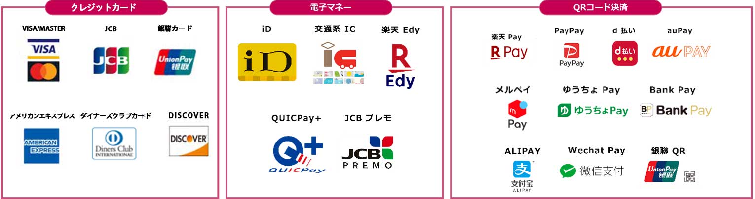 利用可能なクレジットカード、電子マネーを教えて下さい。