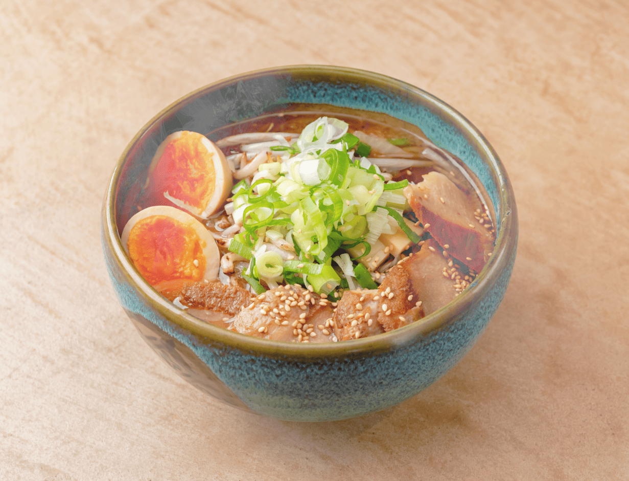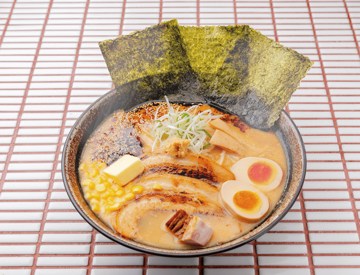 じっくりと時間をかけて炊く豚骨白湯スープ。そこに白味噌や秘伝の焙煎味噌ダレを組み合わせ、新しくもどこか懐かしさを感じさせる『味噌ラーメン』に。その深みのあるおいしさに、きっと虜になるはず。
